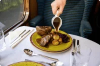 Two original mysteries await in 2025: “Here's to the Bride & Vroom!” (June and August) set in the glamour of 1928 with archaeologists, mummies, and mayhem; and “Kintsugi Gold” (July and September), a 1946-era art world riddle with surprise retirements and secret technology. Use your detective skills to interview suspects, follow leads, and uncover the culprit—all while enjoying food prepared in our onboard kitchen coach, Car No. 80030.